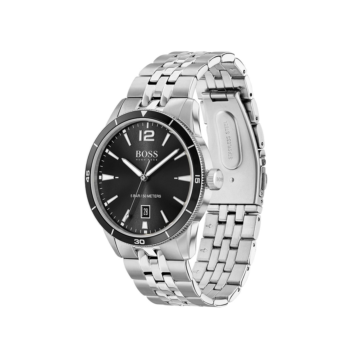 Dit BOSS horloge uit de Drifter serie met artikelnr. HB1513911 heeft een stoere uitstraling. Het stijlvolle herenhorloge is voor de man die zich graag casual kleed. Het herenhorloge heeft een ronde stalen kast met zwarte wijzerplaat met daarop een datum en heeft een zwarte bezel. De band heeft  fijne mat/glanzende zilverkleurige stalen schakels die het horloge een sportief uiterlijk geeft. Het horloge heeft mineraal glas, een doorsnee van 42mm en is 5 ATM.