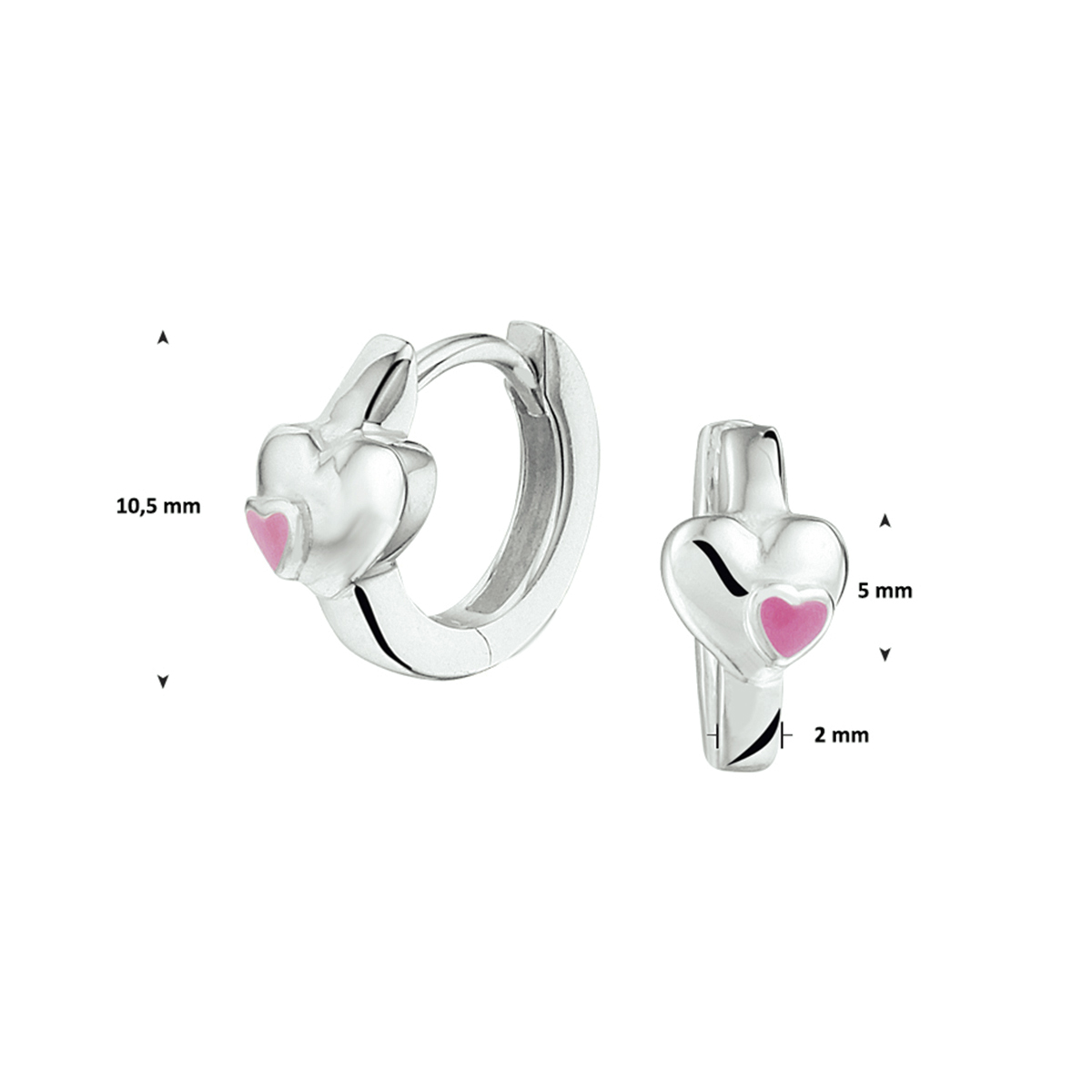 Schattige zilveren klapcreolen uitgevoerd met een hart van 5x5.5mm en roze emaille. Tip: Leuk om kado te geven! Zie je ze al stralen?
