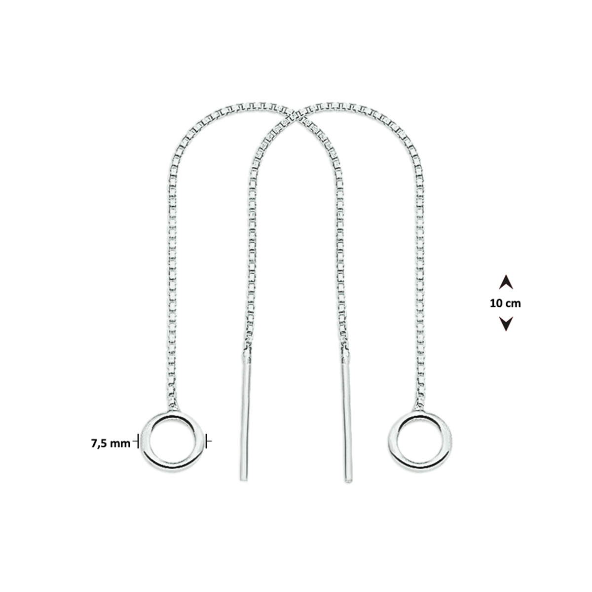 Zilveren doortrekoorbellen.