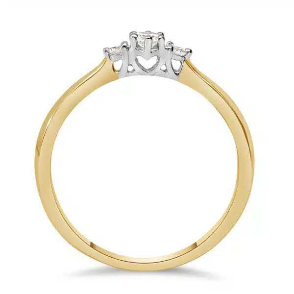 Deze prachtige ring, model GBG0066, combineert elegantie en luxe. Gemaakt van goud, bevat hij drie briljant geslepen diamanten met een totale caraatgewicht van 0.14, in kleur H en zuiverheid SI1. Perfect voor een speciale gelegenheid of dagelijks dragen. Draag deze ring als een statement stuk op zichzelf of combineer met andere gouden sieraden voor een complete look.