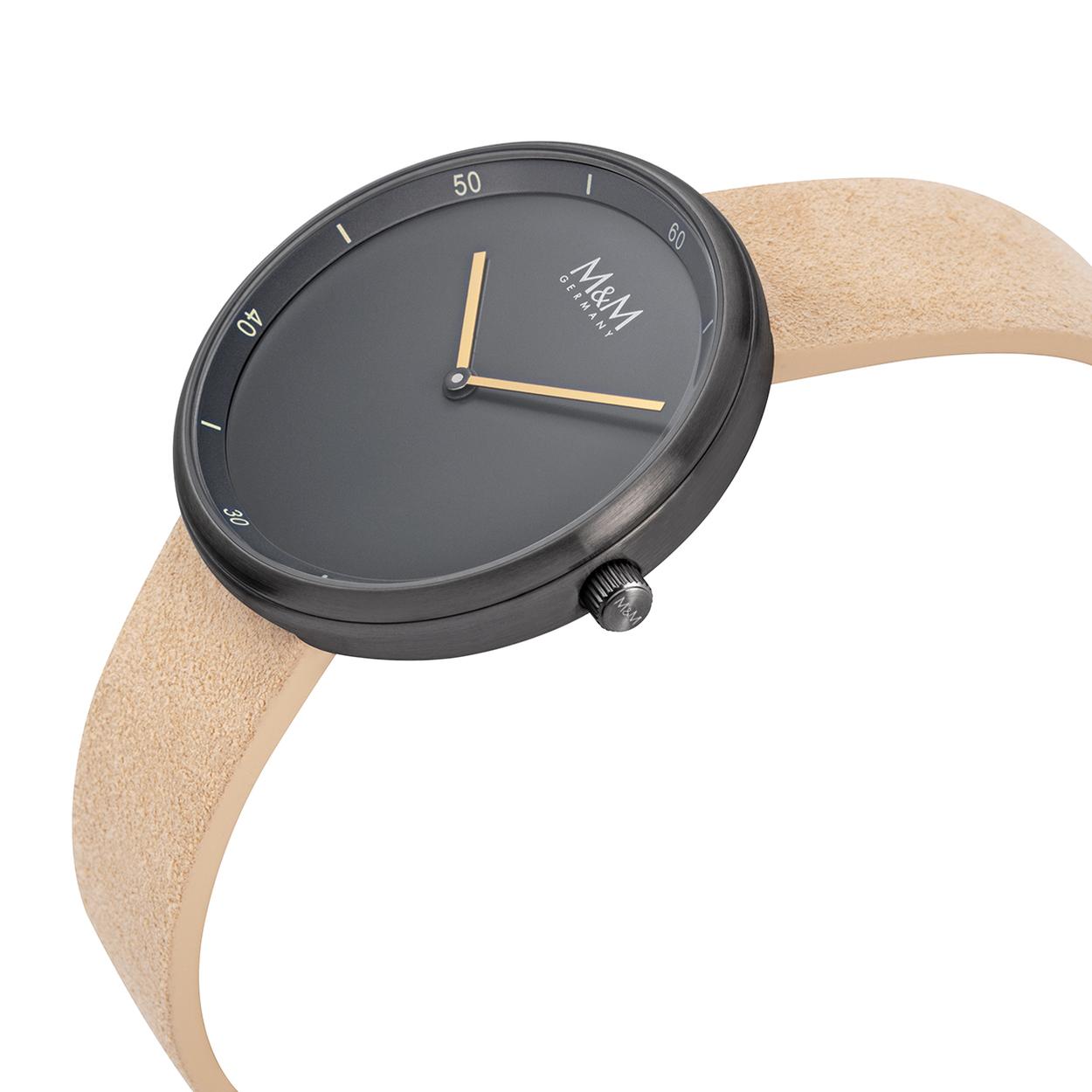 Dit M&M horloge is een dameshorloge. De diameter van de kast is 36 mm. De kast is zwart van kleur. De band is gemaakt van nubuk-leder en is bruin van kleur. Het glas van het horloge is gemaakt van gehard mineraal. De waterdichtheid is 3 ATM.