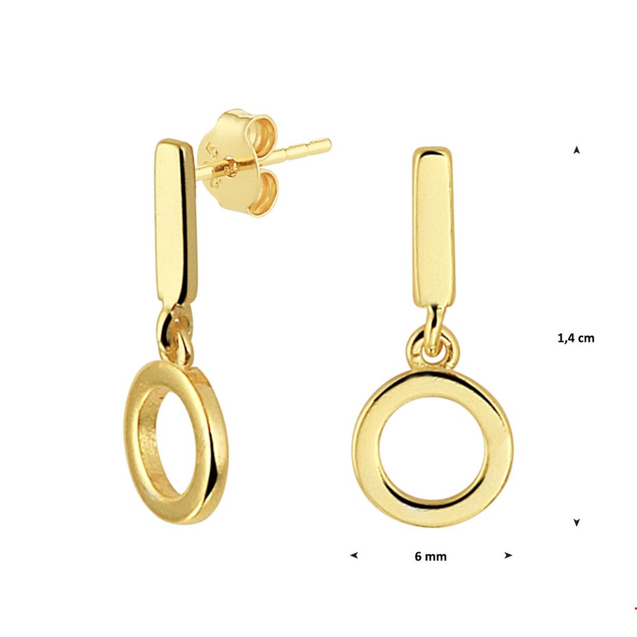 Beschrijving: Trendy geelgoud op zilveren oorhangers met een balkje en een open rondje. De oorhangers hebben een hoogte van 1,4cm. Tip: Leuk om kado te geven! Zie je ze al stralen?