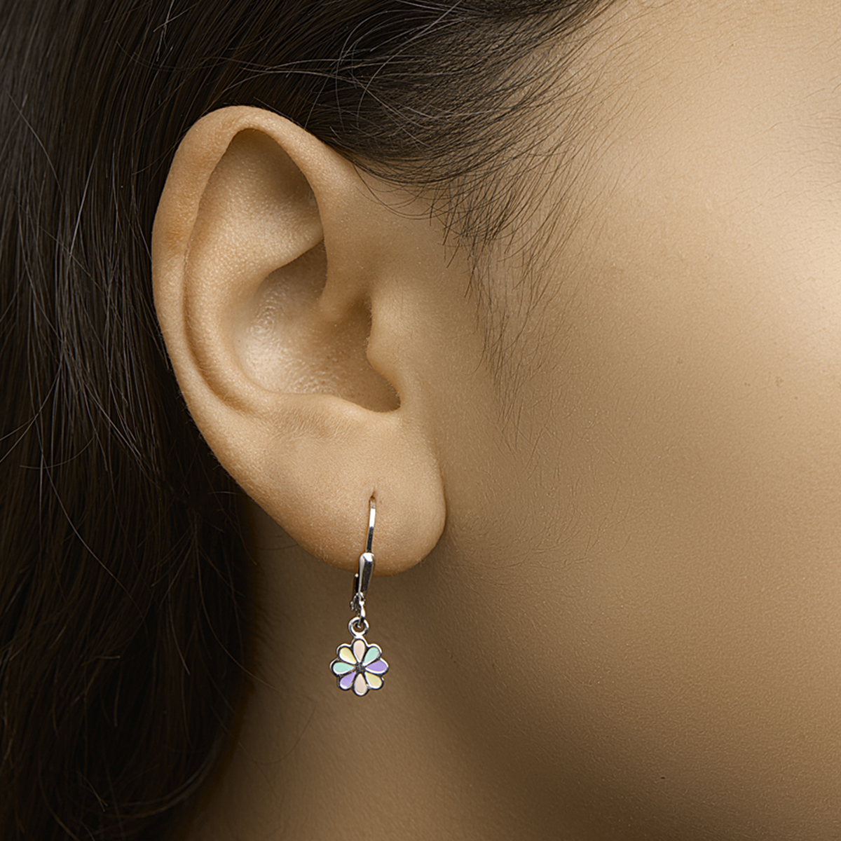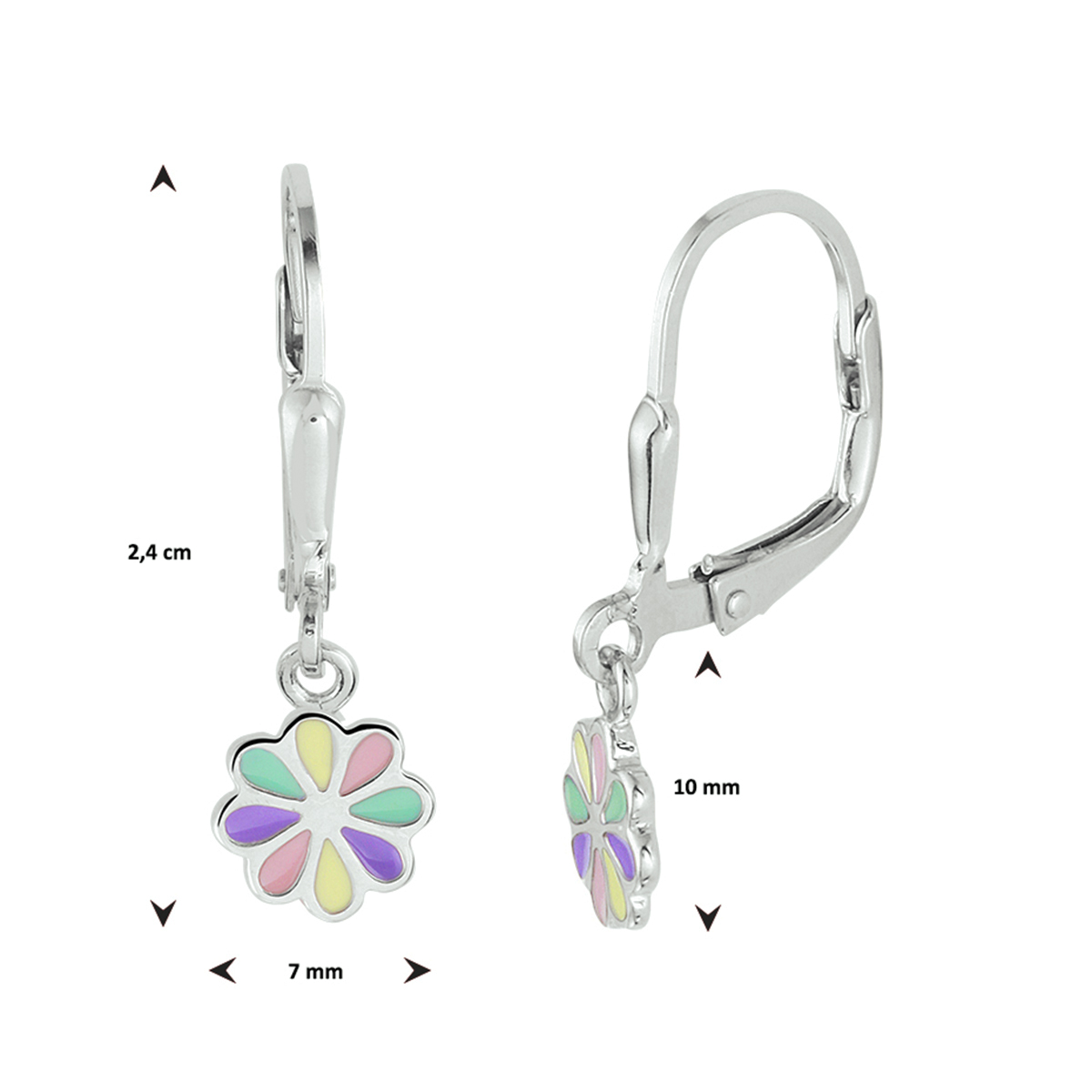Gerhodineerd 925 zilveren oorhangers uitgevoerd met een bloem. De oorhangers hebben een totale hoogte van 2.4cm. De afmeting van de hanger is 10x7mm.