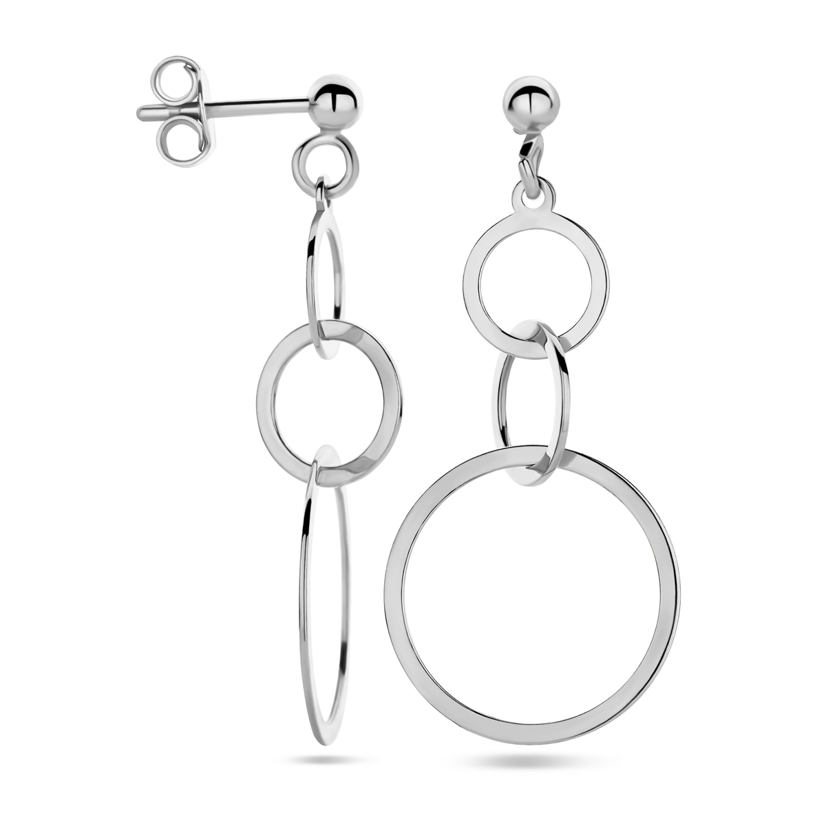 Gerhodineerd 925 zilveren oorhangers uitgevoerd met cirkels. De oorhangers hebben een totale hoogte van 3.4cm.