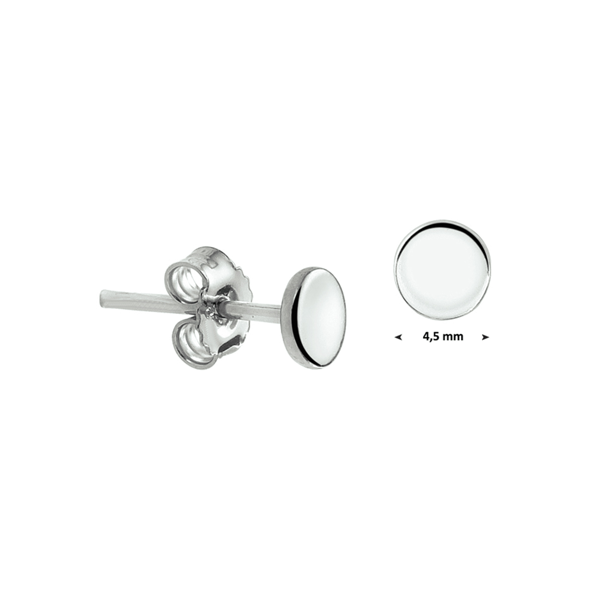 Zilveren oorknoppen van 4.5 mm.