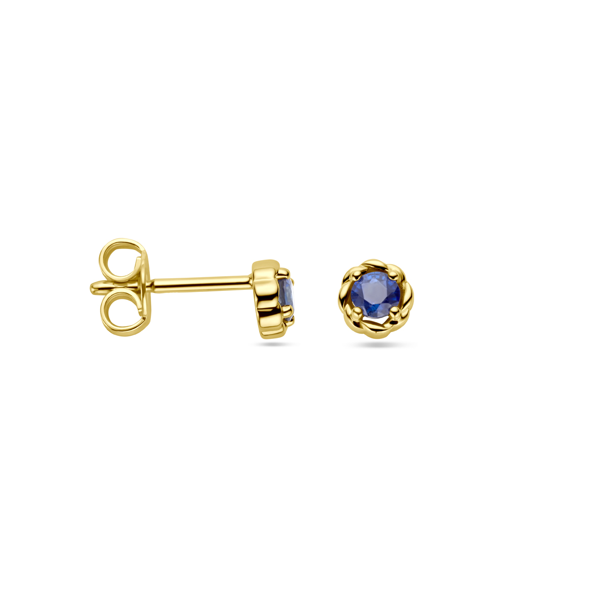 14k Geelgouden oorknoppen uitgevoerd met saffier. De oorknoppen hebben een diameter van 4.5mm.