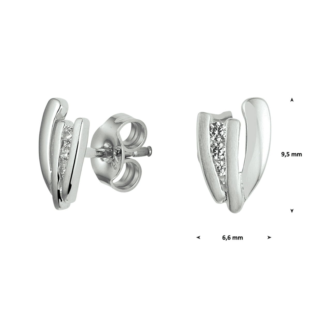 Gerhodineerd zilveren oorknoppen met een afmeting van 9.5x6.6mm uitgevoerd met een luxe rijzetting van 3 briljant geslepen zirkonia. De oorknoppen zijn te combineren met bijpassende sieraden uit onze collectie.