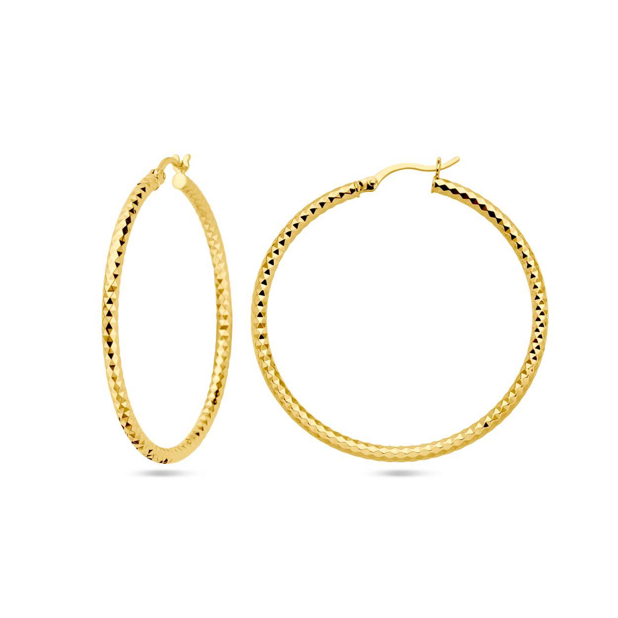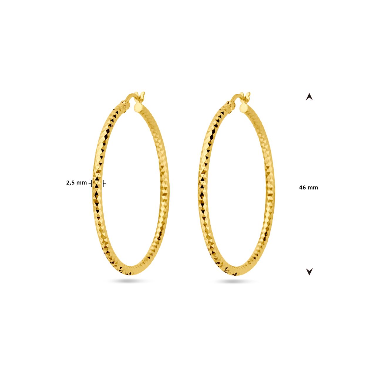 Geelgoud op 925 zilveren oorringen met een afmeting van 46x2.5mm. Geen garantie op de plating.