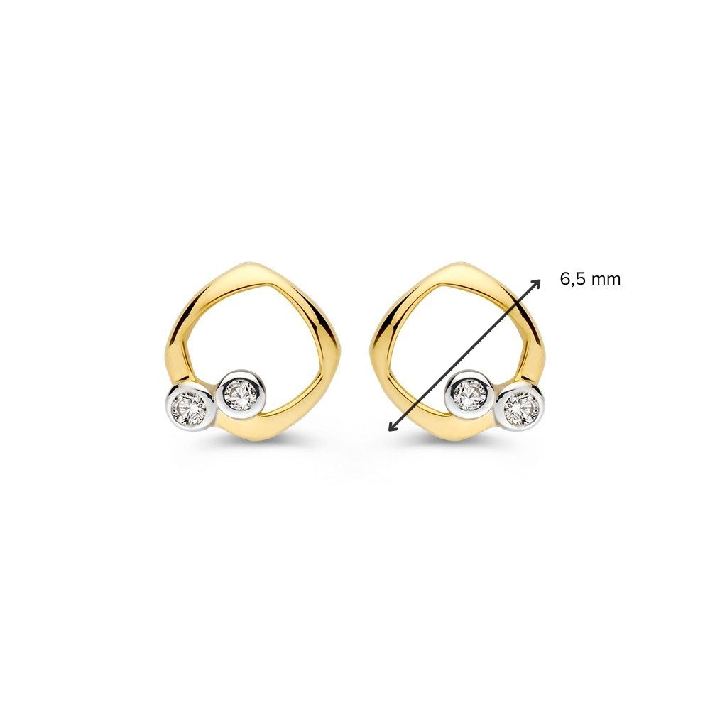 Bicolor wit- en geelgouden oorstekers in organische vorm met zirkonia's.