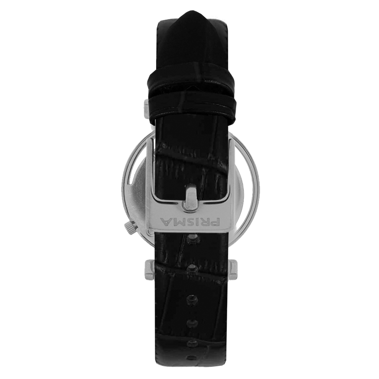 De Prisma P.2400 Dames Edelstaal Design 5 ATM 35mm is een horloge dat aan uw vereisten voldoet. Het horloge heeft een echt lederen zwarte Croco band en een wijzerplaat zwart met zilveren index en Romeinse cijfers. Het horloge werkt op quartz en heeft een luxueuze uitstraling door de dubbele cirkelvormige kastopbouw. Het glas is krasvast en het horloge is spatwaterdicht (handenwassen, regen). Het horloge heeft een kastmaat van 35mm breed en 6.5mm dik
